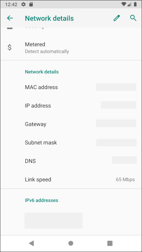 Determine the IP address of your Android device. One way to find out the IP address is to look under Settings > Network & internet > Wi-Fi, then tap on the WiFi network that the device is connected to, and then tap on Advanced. This will open a dropdown showing information about the network connection, similar to what is seen in the screenshot below: