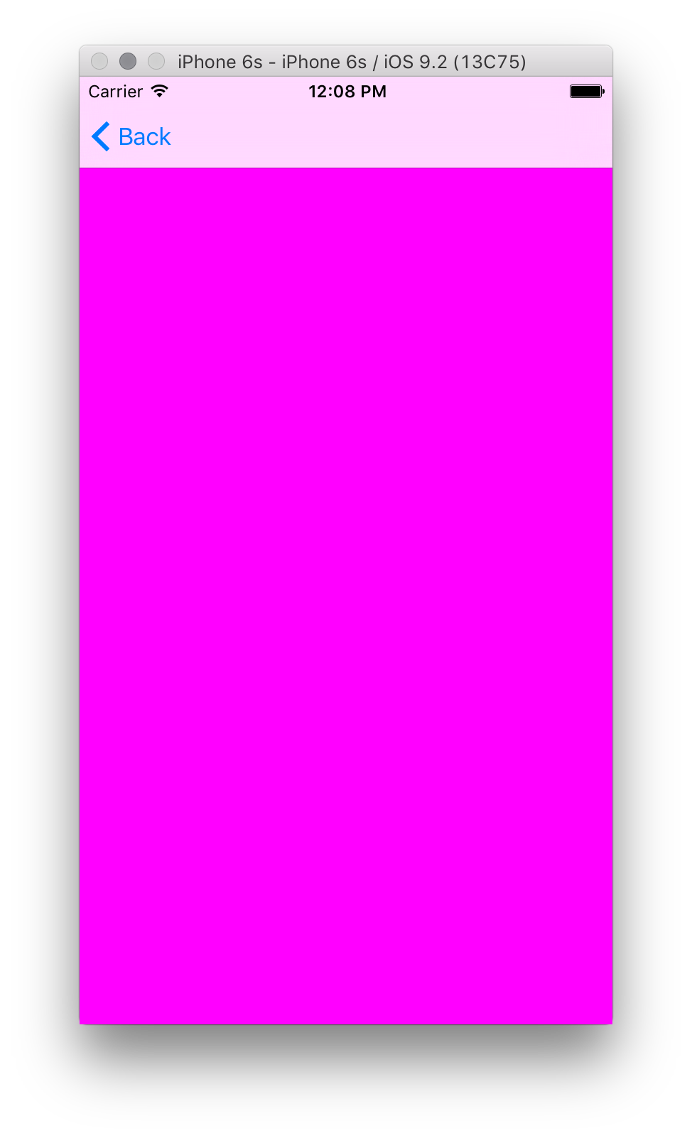 Notice that by default, when you use a Navigation Controller, iOS gives the application a navigation bar and a back button to allow you to move back through the stack.