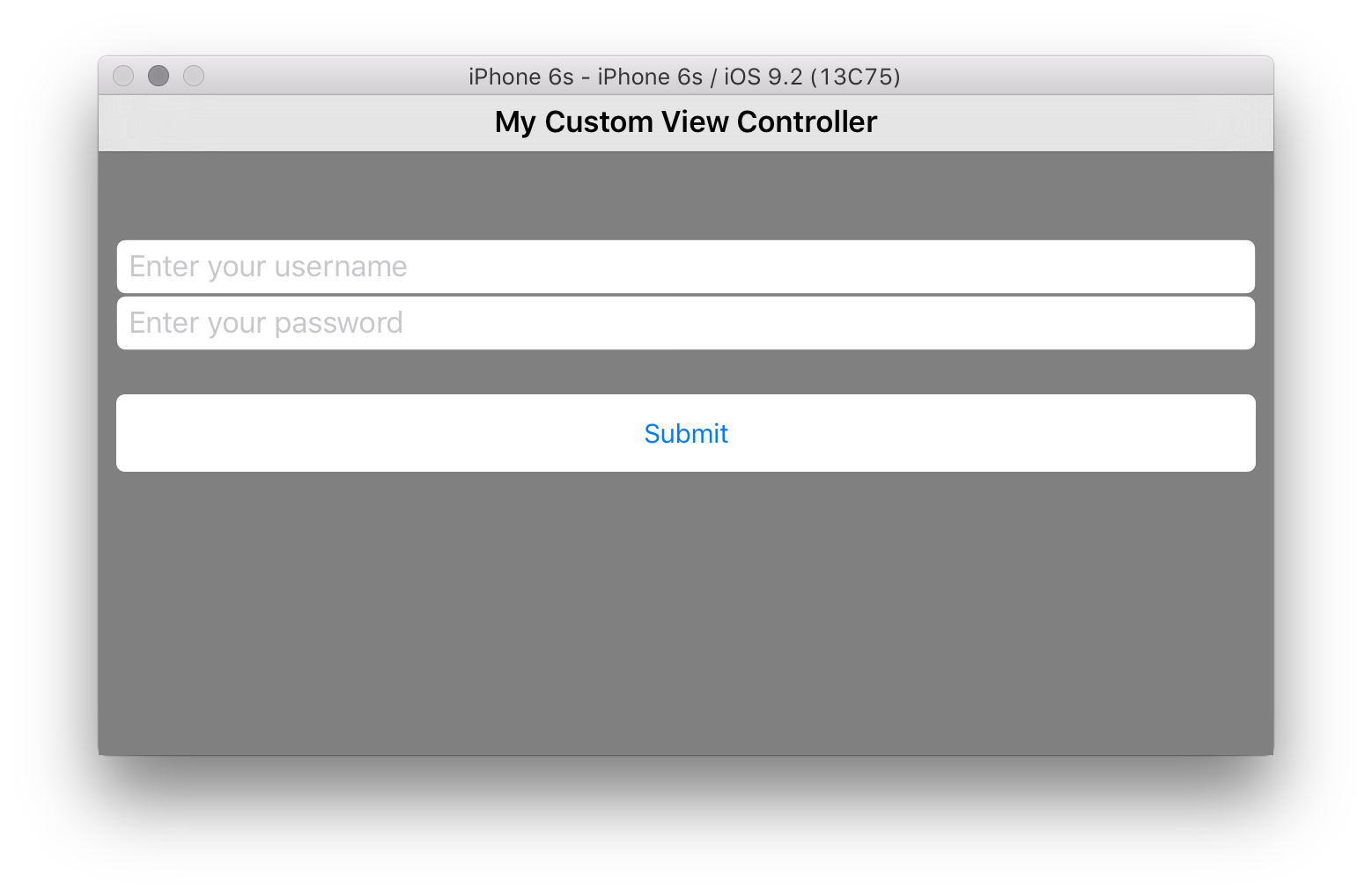 For example, let's edit the CustomViewController to create a login screen where the user can enter a username and password. The screen will consist of two text fields and a button.