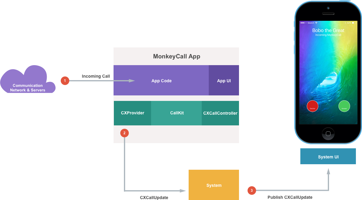CXProvider- This allows the MonkeyCall app to inform the system of any out-of-band notifications that might occur.CXCallController- Allows the MonkeyCall app to inform the system of local user actions.