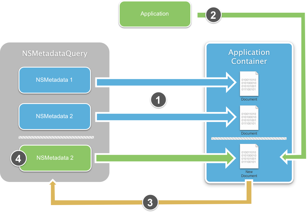 - An iOS device using file coordination creates a new Document and saves it to the iCloud Folder.