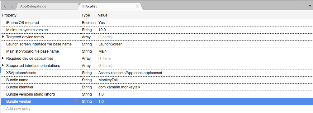 NSSpeechRecognitionUsageDescriptionfor the Property,Stringfor the Type and a Usage Description as the Value. For example:If the app will be handling live audio transcription, it will also require a Microphone Usage Description. Click on Add New Entry, enter