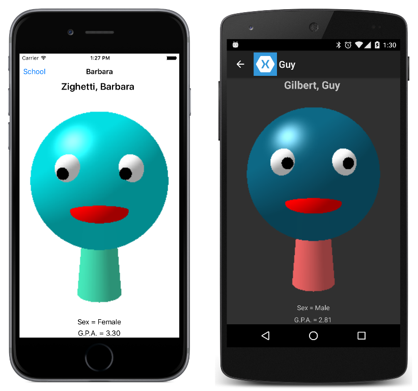 The StudentNotes sample has a home page that lists all the students. When a student is tapped, this navigates to a TabbedPage derivative, StudentNotesDataPage, that incorporates three ContentPage objects in its visual tree, one of which allows entering some notes for that student.