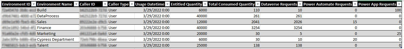 | Consumed Quantity | Usage of Power Platform requests. |