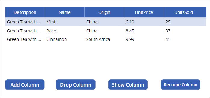 Tables, the core components of connectors providing tabular data, are essential to your app. You can display, interact with, and manipulate complete tables, filtered tables, individual records, or specific fields within those records. The possibilities are vast, and all the data within the table is easily accessible. Once you connect to a data source, you can effortlessly bring in one or more tables, selecting exactly what you need to power your app's functionality. Below is an example of a table we'll be creating in this unit's exercise.