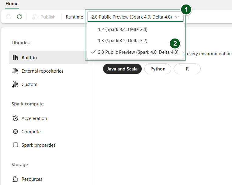The Fabric Runtime 2.0 public preview stage gives you access to new features and APIs from both Spark 4.0 and Delta Lake 4.0. The preview lets you use the latest Spark and Delta-based enhancements right away as well as ensuring a smooth readiness and transition for enhanced and improved changes like the newer Java, Scala, and Python versions.