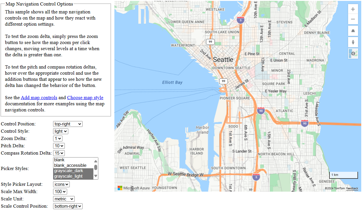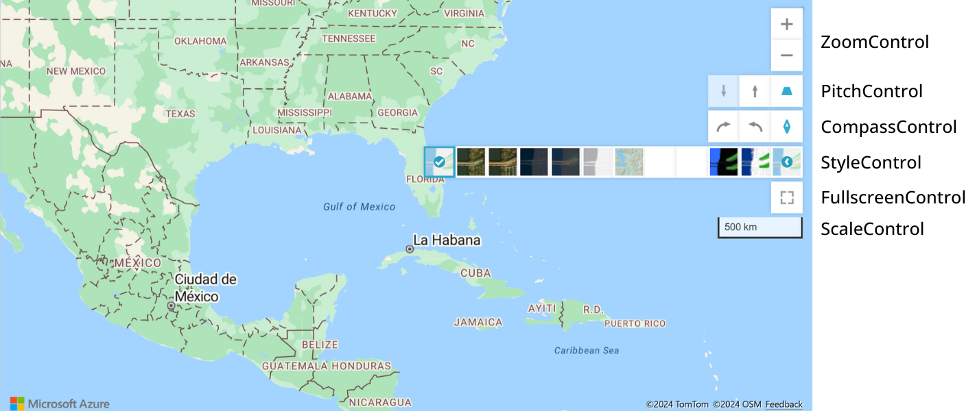 This article shows you how to add controls to a map, including how to create a map with all controls and a style picker.