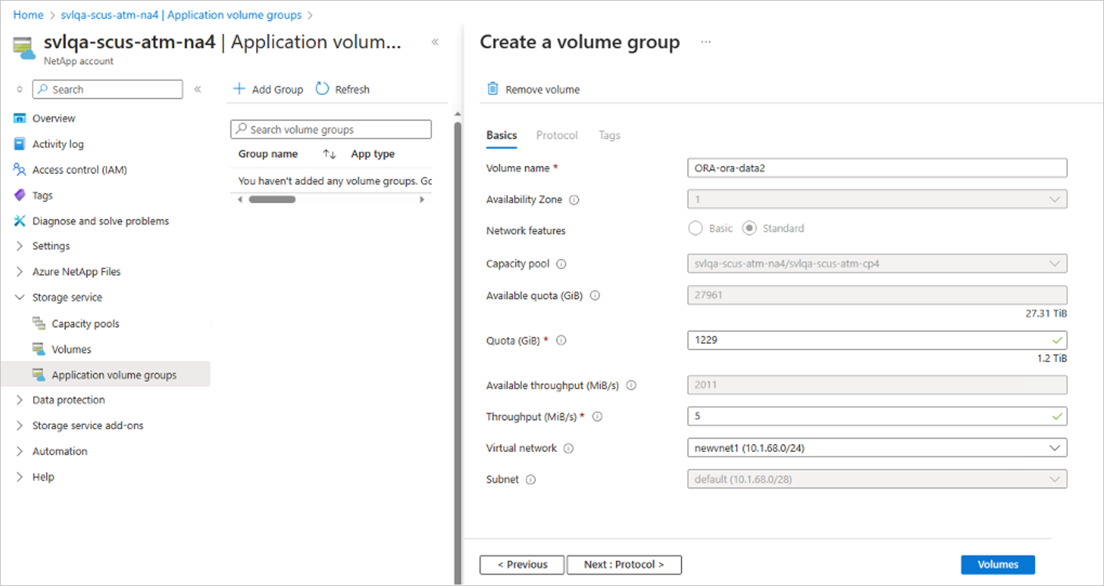 This article describes how to deploy all required volumes for your Oracle database using Azure NetApp Files application volume group for Oracle.