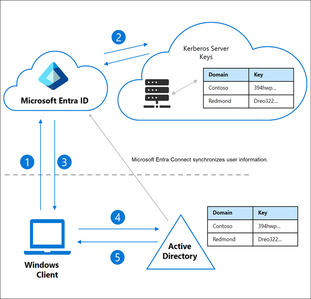 Microsoft Entra ID can issue Kerberos ticket-granting tickets (TGTs) for one or more of your Active Directory domains. With this functionality, users can sign in to Windows with modern credentials, such as FIDO2 security keys, and then access traditional Active Directory-based resources. Kerberos Service Tickets and authorization continue to be controlled by your on-premises Active Directory domain controllers (DCs).