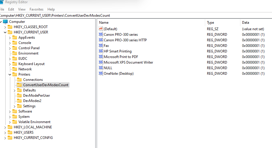 Press Windows and R key together > Type in regedit and click OK to open the Registry Editor > Expand the folders in sequence: HKEY_CURRENT_USER_Printer_Connections > Select the Inkjet Printer from the list and right-click on it to delete.