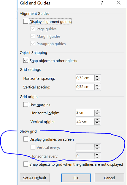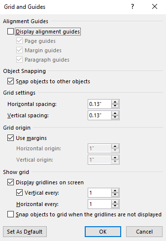 Given this situation, I suggest you follow the steps below to add the Grid Settings button to the QAT bar so that you can configure this: