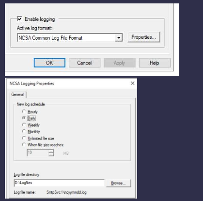 Is there any place I can find that beside where we have log files specified in the Properties of SMTP Virtual Server. The image contains what we have configured for LogFiles.