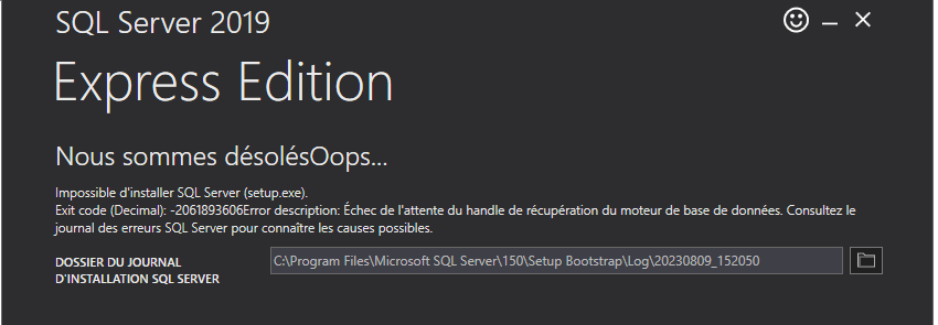 You need to follow the instructions: Check the SQL Server error log for potential causes. You find this log in C:\Program Files\Microsoft SQL Server\MSSQL15.SQLEXPRESS\MSSQL\LOG\ERRORLOG, assuming a default installation of SQL Express.