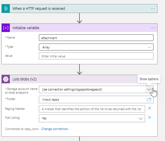 "name": "@parameters('$connections')['azureblob']['connectionId']"