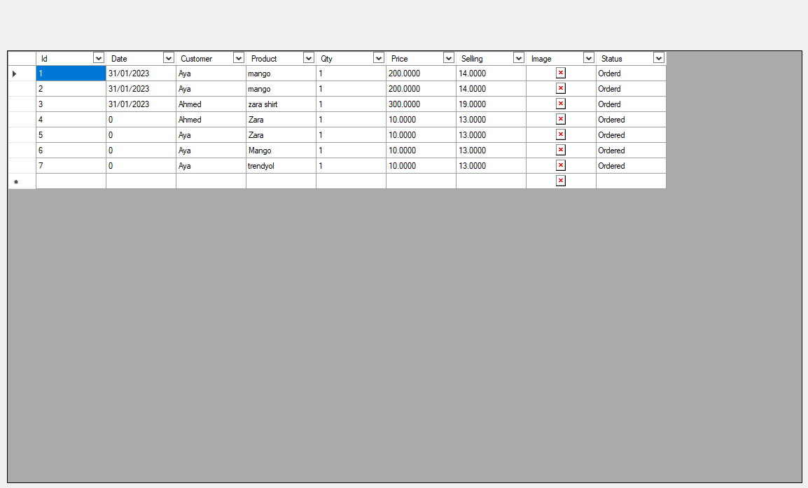 @Ahmed Babajan , Welcome to Microsoft Q&A, I recommend that you re-add the column one by one instead of using dataGridViewProducts.DataSource = productsList;, which may force your Image column is string type. We need to add the DataGridViewImageColumn to your current datagirdview.