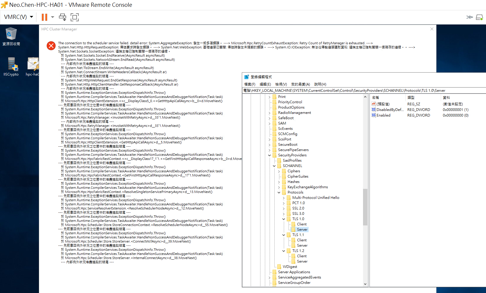 Based on the details shared, looks like the HpcNaming service on the head node could not be connected to resolve the scheduler name. Request you to double check if the communication certificate is installed correctly,