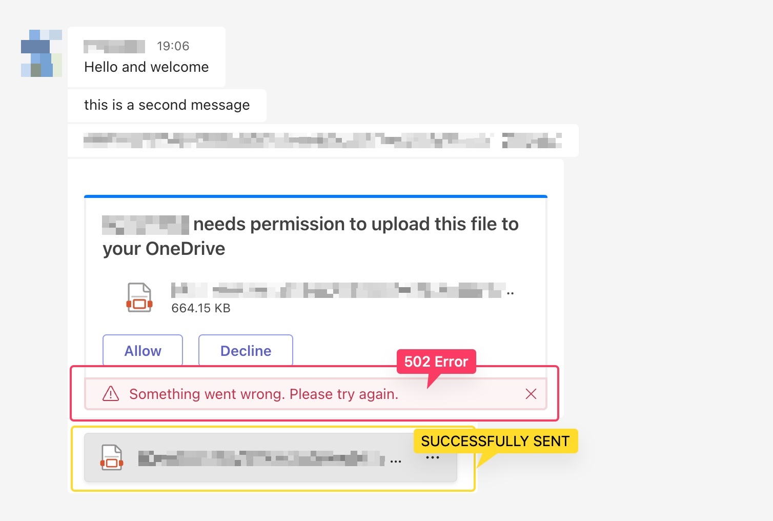 Teams returning 502 error on invoke when consenting / declining file upload request