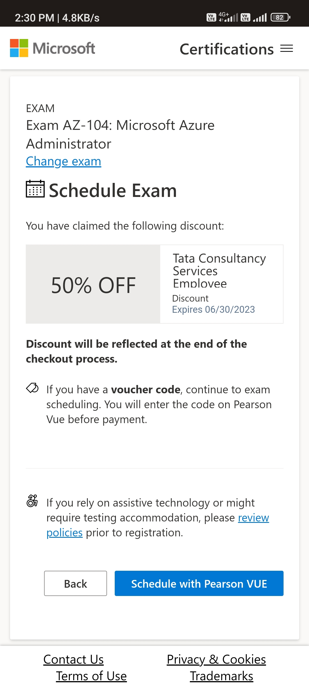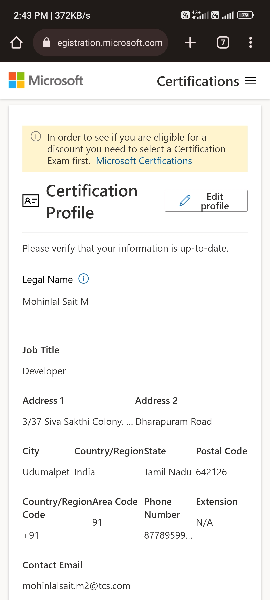 Please ask your question in the Microsoft Certification forum using link below. There are support moderators over there that will respond to your question in 1 business day and can assist with fixing the issue that is blocking you from registering for your exam: