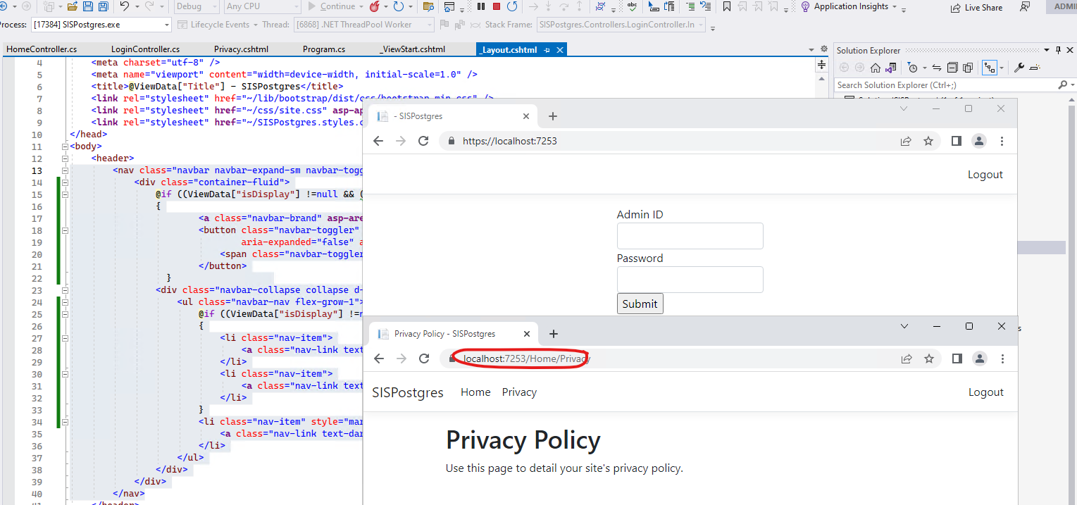 The issue relates the _Layout.cshtml page.