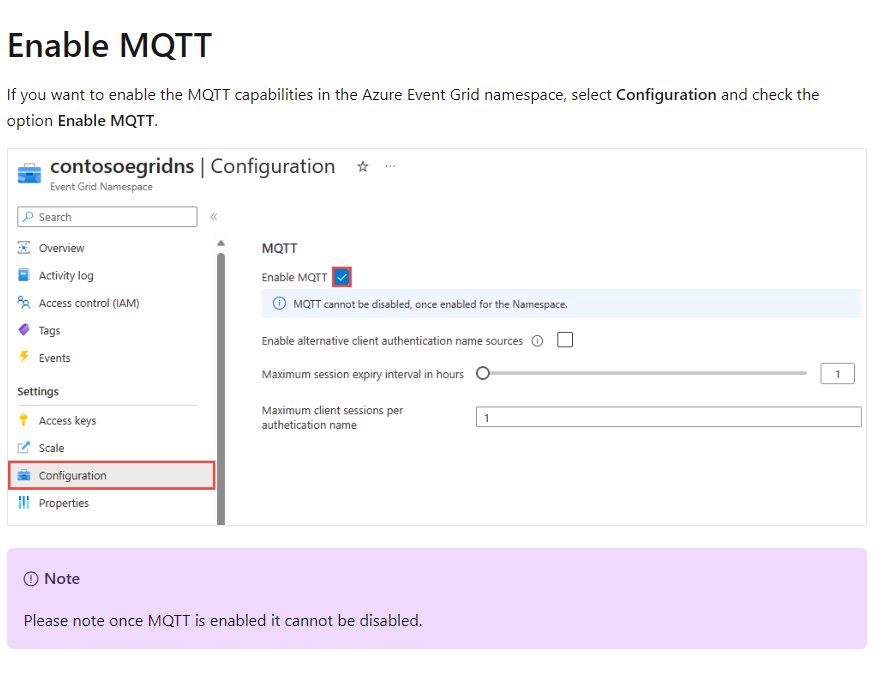 Imp Note: Once MQTT is enabled, it cannot be disabled.
