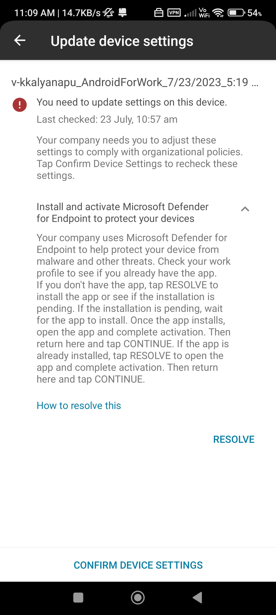 1.Which enrollment method did you use to enroll this android device to intune? Here are the enrollment methods listed in the following link: