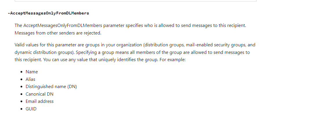 I'm trying to add one Dynamic Distribution List to sender restriction list of another Dynamic Distribution List and getting the following error: