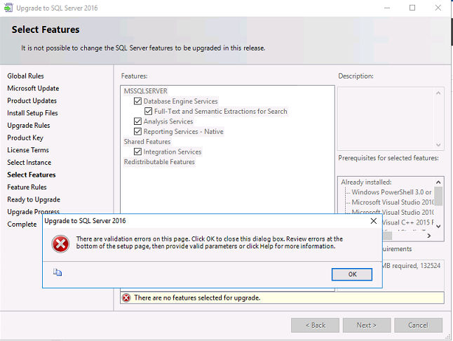 We have SQL 2012 Business Intelligence instance and we are trying to upgrade SQL 2016 Enterprise as one of below link says suitable for as pre-checks.