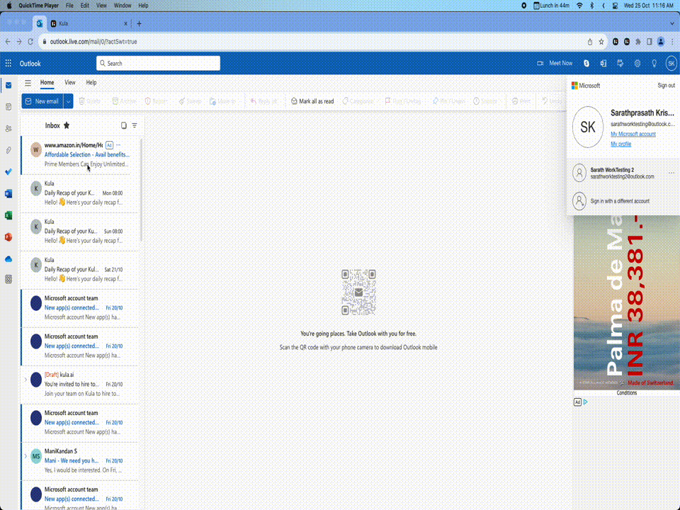 Based on the GIF you provided, it looks like the Microsoft OAuth flow is working as expected. The flow seemed to be checking if the user was already signed into their Microsoft account, which could be the reason why you saw the user displayed briefly before being redirected to the sign-in page.