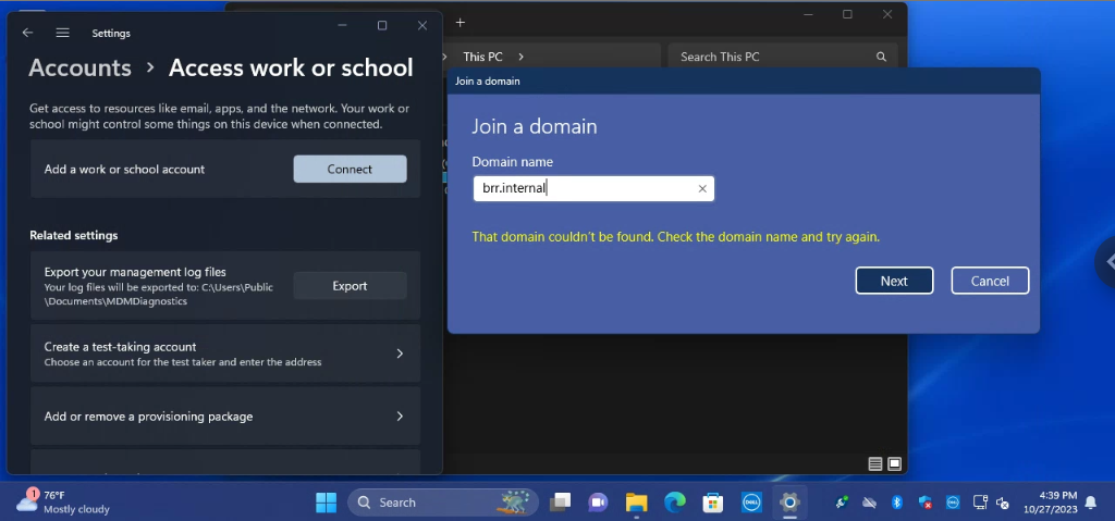 Error: "The following error occurred when DNS was queried for the service location (SRV) resource record used to locate an Active Directory Domain Controller (AD DC) for domain "BRR.INTERNAL":