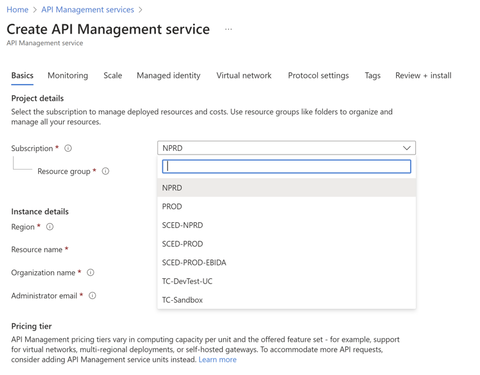 @Mgbeke, Oyin (TC/TC) Thanks for reaching out. If you are unable to see your resource group when trying to create an APIM instance, it is possible that you do not have the necessary permissions to view the resource group.