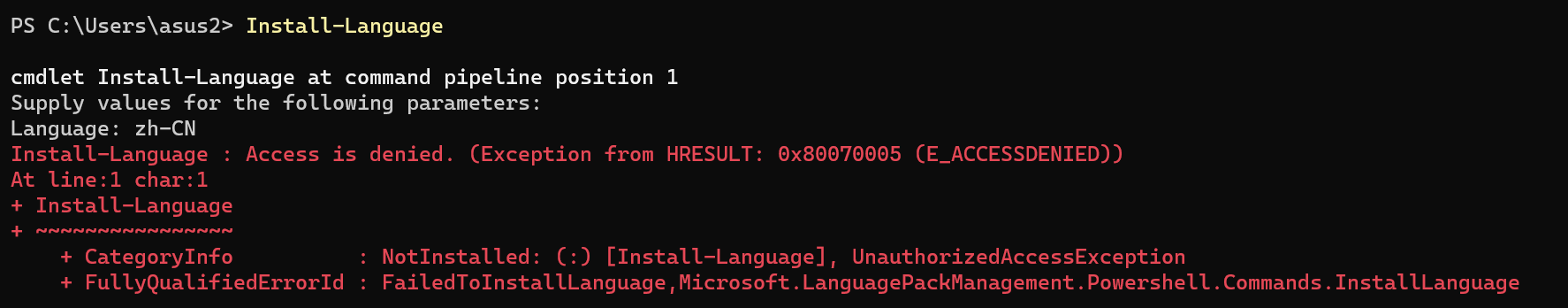 - Type Set-SystemPreferredUILanguage and hit enter.