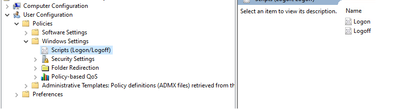 Navigate to User Configuration Policies\Windows Settings\Scripts (Logon/Logoff)