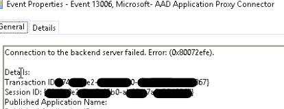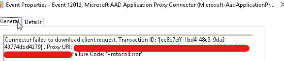 Warning event logs for the Azure AD application proxy connector