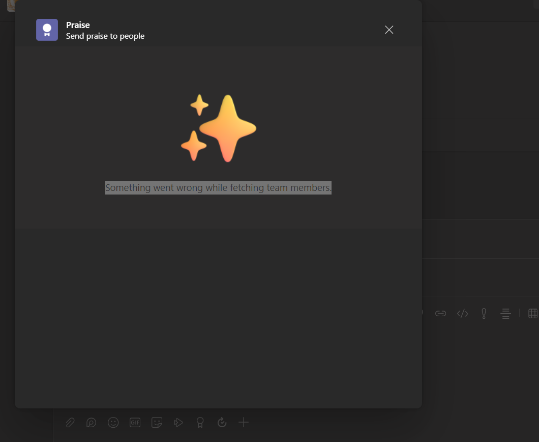 Issue Symptom: Trying to send a Praise to some users in a Teams channel, but something is preventing me from selecting any users.