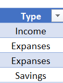 I am trying display column elements using "=Tracking[Type]" Tracking is table name and Type is column name. This gives value Error.