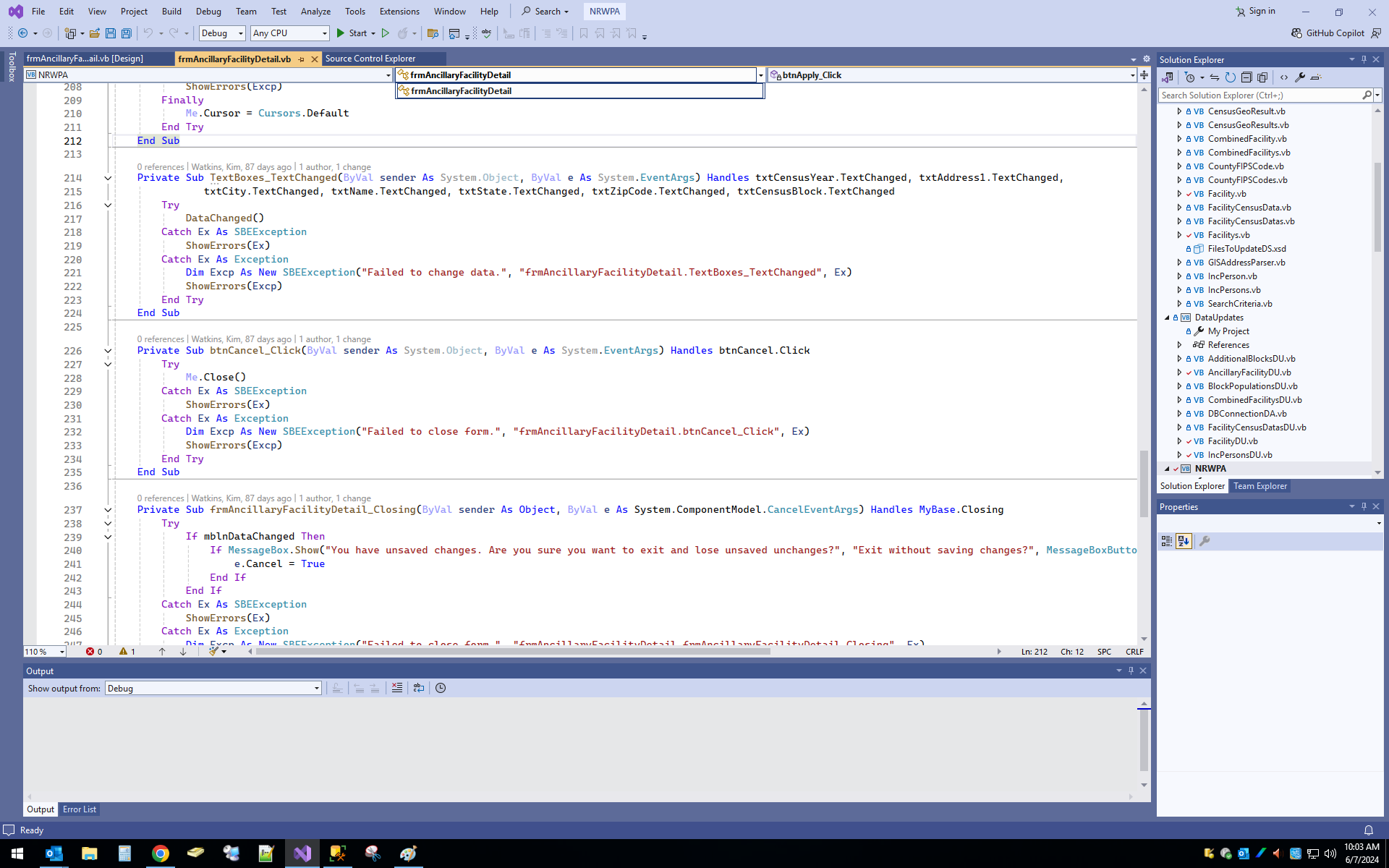 The easiest way of fixing this problem is to open a form at or near the top of the solution explorer list, look for the first blank line and add a single apostrophe. As soon as this is done the dropdown list will show the controls. Making the change for one form will enable the dropdown list for all forms in the project, so you only have to do it once. However, when next you open the project the problem will return but it can be easily fixed again by removing the apostrophe (adding a second one would also work). Opening the project a third time you have to add the apostrophe again. Please note that adding spaces does not work.