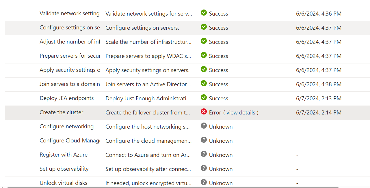 I reviewed the cluster deployment logs, can see the error " Cannot bind the argument to parameter "Path" because it is null.