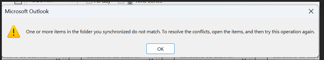 In the meantime, there are some workarounds you may refer to, considering you have tried ‘cleared offline data...’, it is recommended that you please try workaround 2. More information: Outlook shows conflict errors when updating or cancelling meetings - Microsoft Support