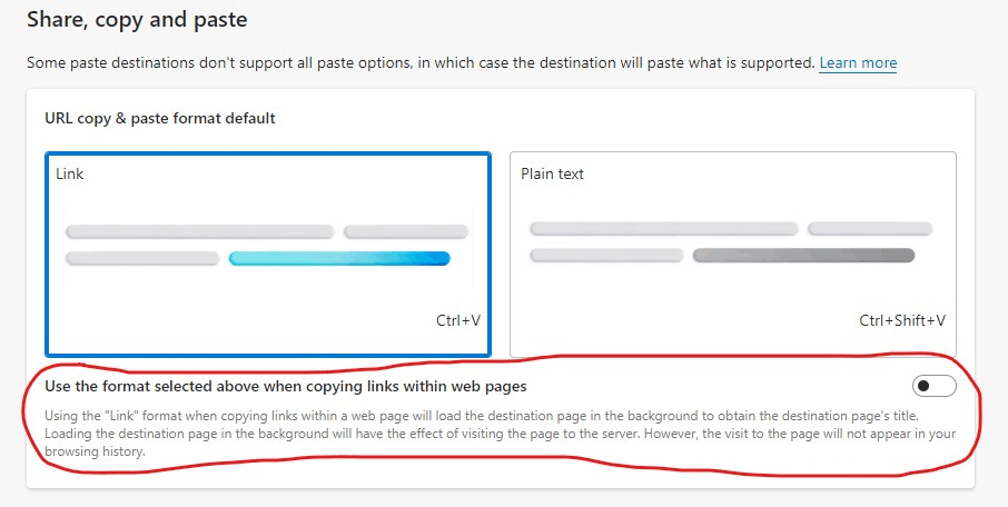 Besides, there's a policy can control the above two "Link" and "Plain text" options. You can enable this policy ConfigureFriendlyURLFormat and choose to use link format or plain text format. You can check if this policy can meet your requirement.