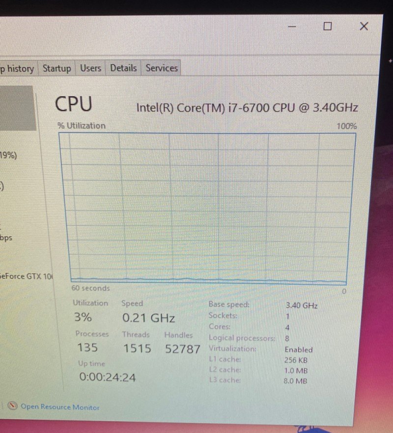 I also just noticed in the performance tab on task manager my cpu speed is locked at 0.20ghz but the base speed is 3.40, any idea?