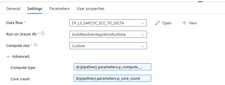 I tried to reproduce your scenario by parameterizing the compute type and core count which is fetch by lookup file and passed down inside foreach. However, unlike what you mentioned, compute size doesn't have 'add dynamic content' option , we need to manually select 'custom' for compute size. It cant be dynamically passed via parameter.