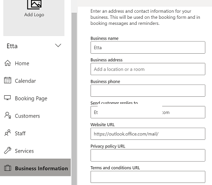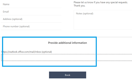We can also add hyperlink to Business Information, but this way isn’t limited to specific service, it will take effect on entire Bookings page.