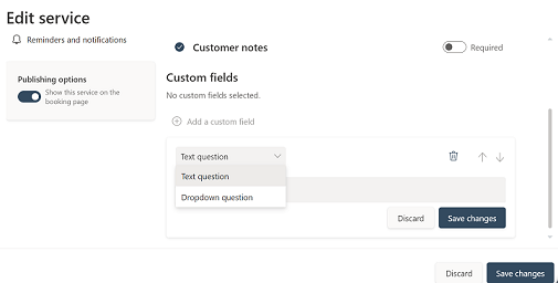 Thank you for your posting. Based on my experience, currently there’re only 2 types of custom field we can add to Bookings page: text question and dropdown question: