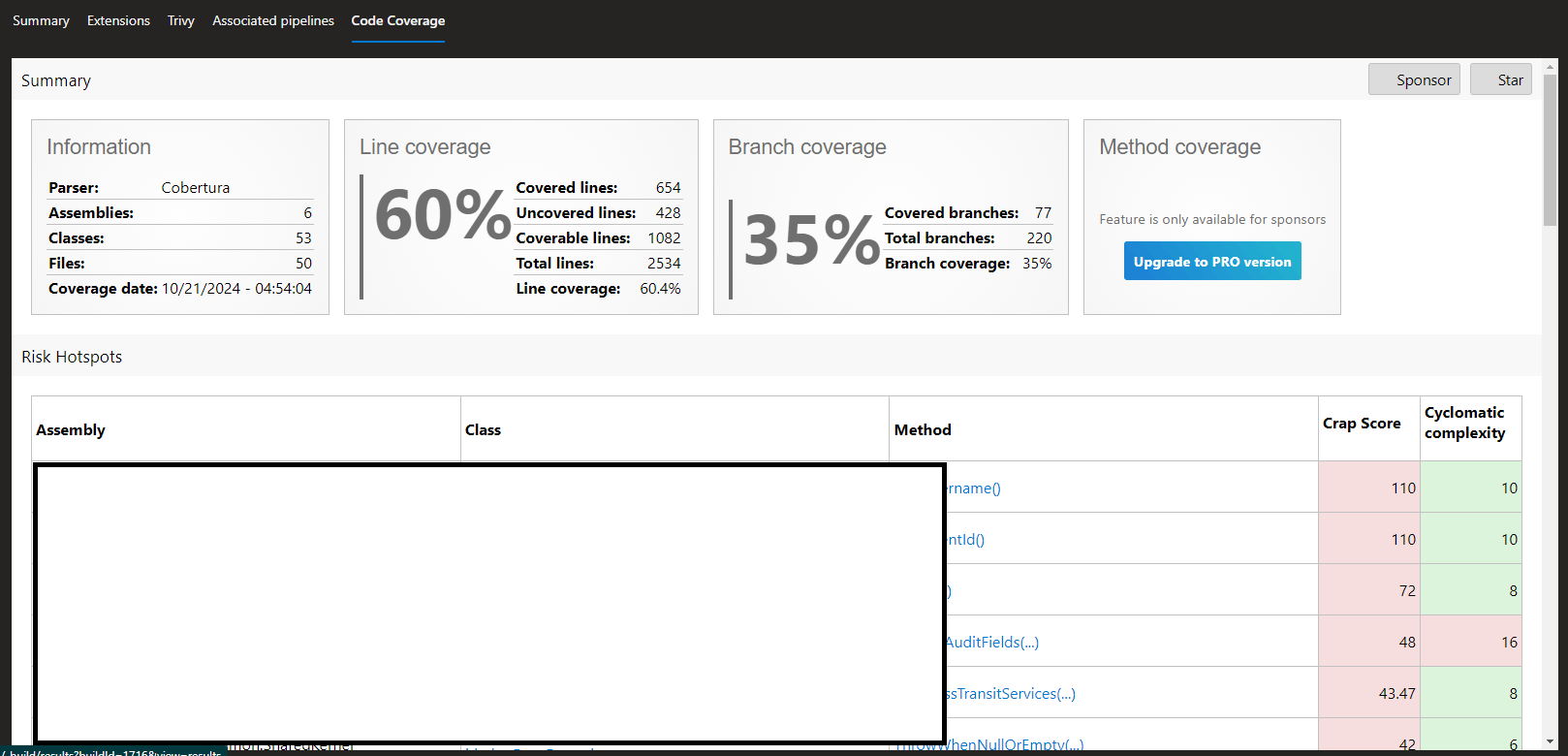 Hi Microsoft support, There's seem to be an issue with the way Azure DevOps render the code coverage report from my .NET application, When I first ran the Azure pipeline to generate the code coverage report, Azure DevOps rendered an HTML report in the Code Coverage tab like in this picture