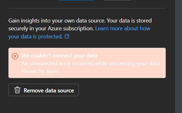 - "The Azure OpenAI resource has public network access disabled and the Azure AI Search resource has no shared private link to Azure OpenAI."