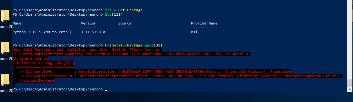 You can check to see if there are such specific steps on the Python site. I removed the Python packages with Uninstall-Package and it worked as expected. Try repairing the installation using the Python installer, then run the Uninstall-Package cmdlet again.
