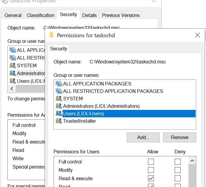 Goal: Non-admistrator users cannot even open the application, or they can open it but have no right to create or edit any task. Any GPO settings cannot cause a creation of a new scheduled task when a logged user is not a member of the group Administrators.