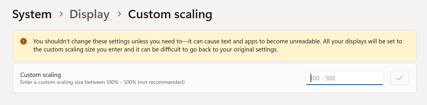 While setting up the connection, simply configure the Display Settings to the desired resolution. Additionally, "Change the size of the display" should be set to 100% to disable any remote DPI scaling. When entering full screen, the display is automatically stretched locally.