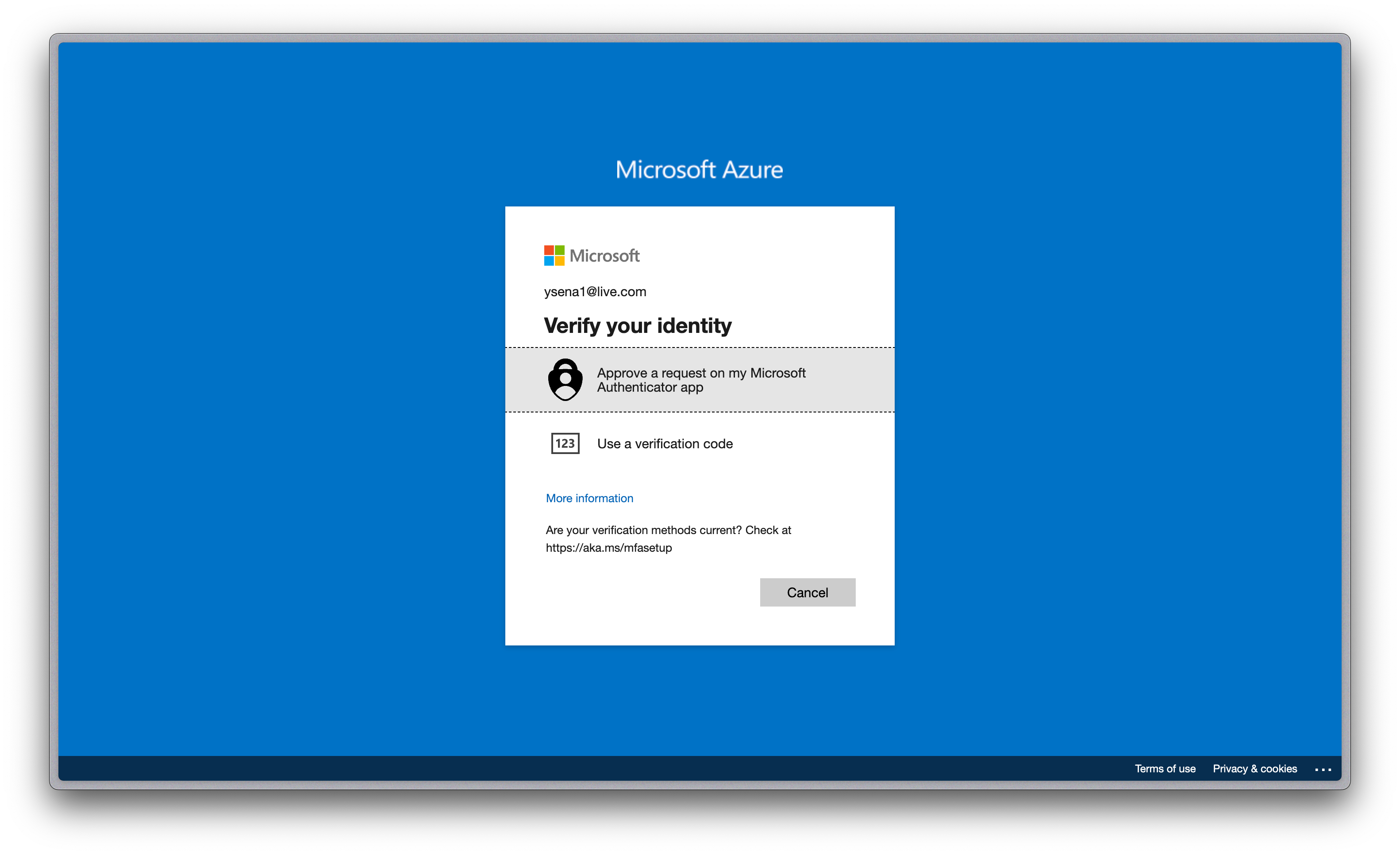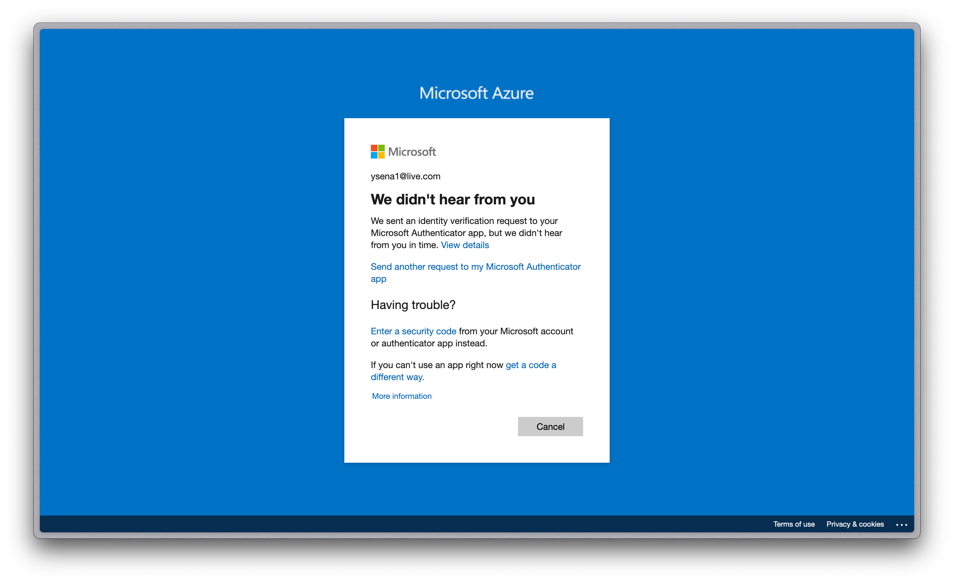 If the account exists, try verifying your request using the Authenticator app (first option). If you are still encountering the same issue, try using the verification code (second option). The verification code is available in the Multi-Factor Authentication app and will not come as a push notification.