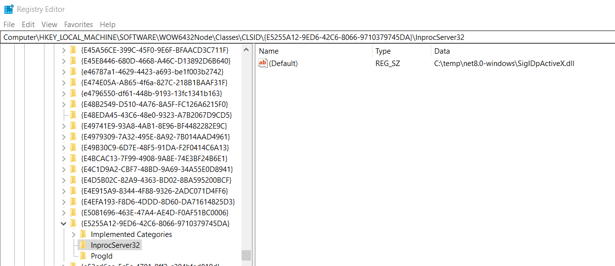 For the .Net 8.0 COM server project (DllServer) the registration looks like this -